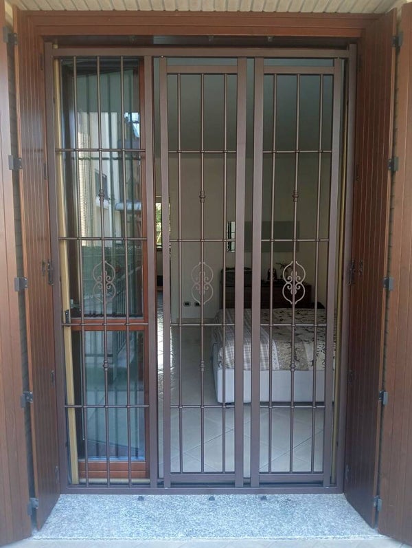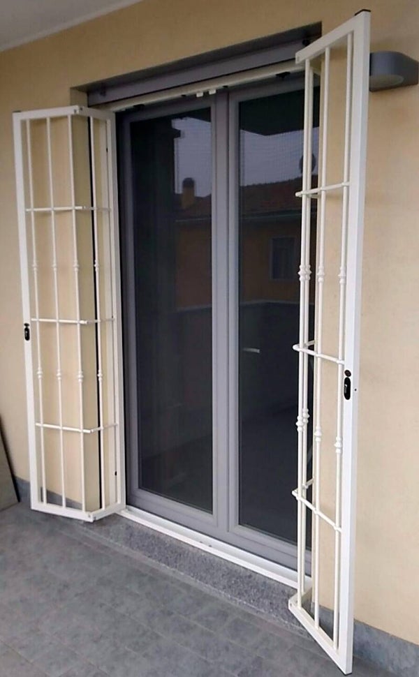Inferriata modello "magica" con apertura interna o esterna senza snodo per agevolare la movimentazione delle persiane esistenti.